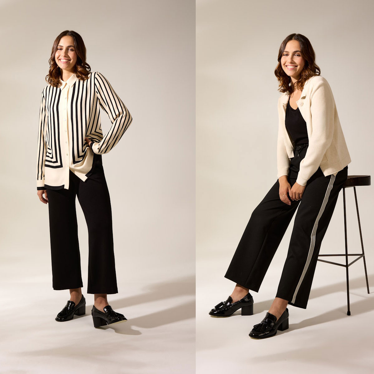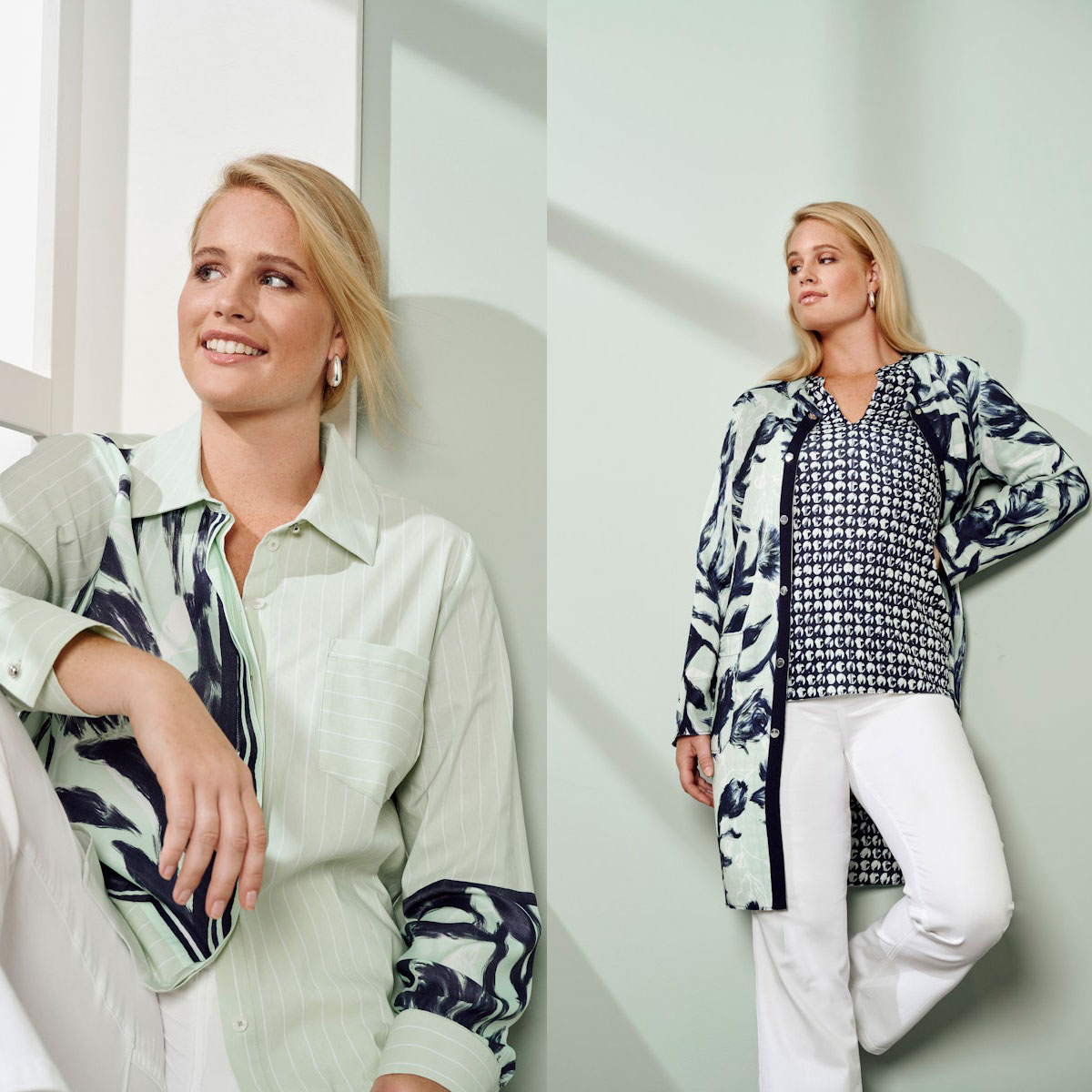 Wir präsentieren auf rund 200 qm  die unterschiedlichsten Modewelten, ob  Business, Casual  oder Basics, das komplette Allroundsortiment für Frauen jeden Alters.
